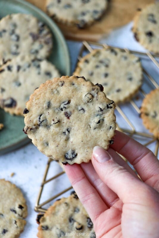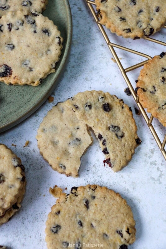 I would say personally that these are basically a biscuit version of a Simnel cake, of a hot cross bun, and a shortbread style biscuit all rolled up into one bake. With influence from how my gran used to make them (I love finding notes in old cookery books), they have a lovely short texture from how they are made, and have the spice level that brings warmth.