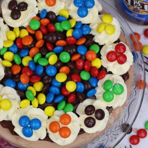 A yummy no-bake M&M cheesecake with a buttery biscuit base, M&M spread chocolate cheesecake, and so many M&M’s! M&M cheesecake! The time has come to take things possibly a little too far… but is it possible to take cheesecake too far? Never. Splitting colours of M&Ms to make sure each swirl takes its colour turn…