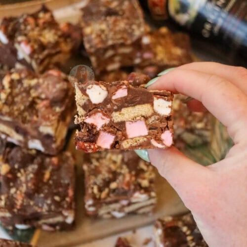 Delicious and festive no-bake Baileys rocky road with oodles of chocolate, biscuits, marshmallows and glacé cherries! I LOVE BAILEYS! So I was sitting there, after having realised I had three more bottles of Baileys in my cupboard then I thought… yes that’s right, three. I am that gal who gets them when on offer, and…