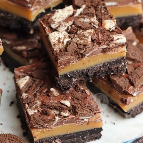 Oreo biscuit base, homemade caramel and chocolate Oreo topping… easy Oreo millionaires! Another millionaires recipe! So… honestly how long was it going to be until I made another millionaires recipe? They’ve become ever increasingly popular on my blog, so I thought I would post an absolute banger. Yes, this isn’t going to be everyone’s…