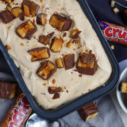 Delicious, sweet, creamy with honey and caramel… 4 ingredient no-churn Honeycomb Crunchie Ice Cream! So hello there – a four-ingredient crunchie ice cream?! Oh YES PLEASE. This is glorious, this is delicious, and it’s probably my favourite ever. I mean, I adore my Oreo ice cream still, but caramel is where my heart is, so…