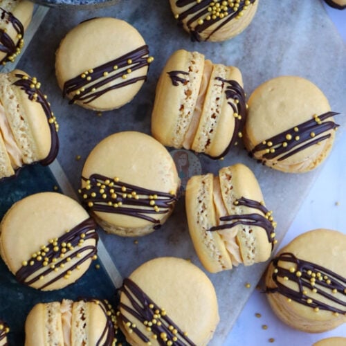 Salted caramel macarons filled with a salted caramel frosting and hidden caramel centre – perfect delicious treat! I remember when posted my first macaron recipe – my halloween macarons – in 2015 and I was so nervous that I had got them wrong or they looked weird… but now I have various macaron recipes and I just…