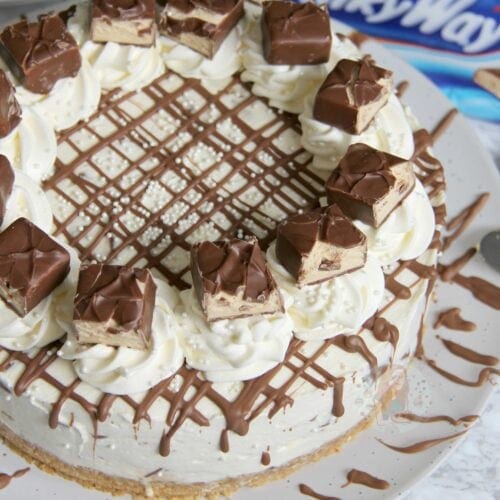 A Buttery Digestive Base, Vanilla Cheesecake with Milky Way Pieces Running Through, and even more Deliciousness on top… The perfect Milky Way Cheesecake! I was searching for Milky Way recipes on Pinterest and got seriously confused.. I had no idea that Milky Way bars in the UK were different to America! America’s Milky Way bars…