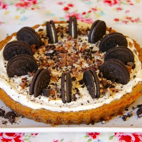 A simple yet decadent dessert for any occasion – chocolatey cookie base, creamy sweet filling and even more cookies on top! Ever since I posted my recipe for my individual chocolate chip cookie dough desserts a few months ago, I have wanted to post a larger dessert that also involves cookies, but is maybe a tad more irresistible…