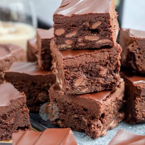 Chocolate Chip Baileys Brownies topped with a Chocolate Baileys Ganache – Perfect Chocolate Bake for a Baileys lover! So it’s currently November, it’s that cosy time of year, and another Baileys recipe is totally necessary, especially after the success of my No-Bake Baileys Cheesecake, Baileys Chocolate Tart, Baileys Cake, and my Baileys Strawberries and Cream Cheesecake…