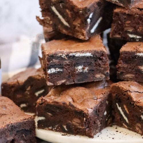 Super chocolatey, fudgy mint oreo brownies with a thick mint flavoured chocolate brownie, stuffed with oreos and chocolate chips. When three of my favourite things join together, you get one of the best bakes ever. Brownies, mint chocolate, and oreos are a combination to win all combinations and I know you are all going to…