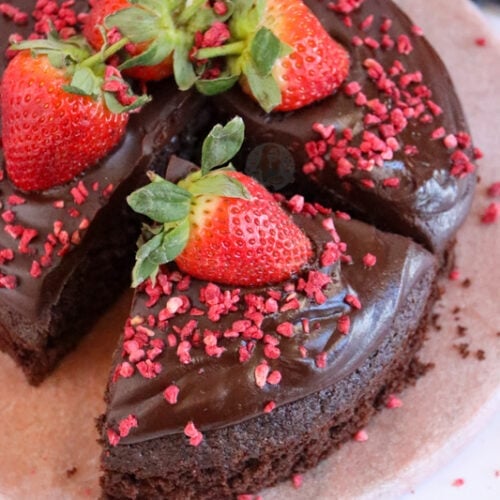 A deliciously easy chocolate cake for two with a simple chocolate sponge, chocolate ganache frosting and more! This beautiful bake is a ‘small batch’ cake that is perfect for two… yes, it serves four slices, so I don’t know about you but I always want two slices of a cake just for myself so… Valentines …