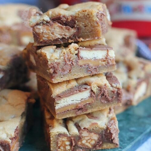 Easy and delicious chocolate box cookie bars – your favourite chocolates, in cookie traybake form! Leftover chocolates Right.. roll with me here. Leftover chocolates DO EXIST. No doubt when I post this recipe, I will get comments saying “leftover chocolates?! what are they?!” as everyone thinks they are being funny… but in all honesty, nearly…
