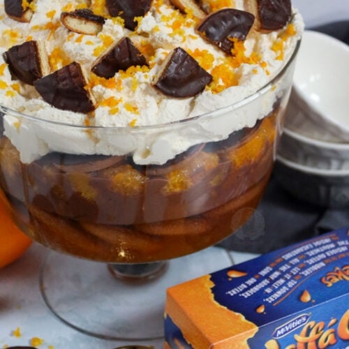 A delicious showstopping Jaffa cake Trifle with orange jelly, chocolate custard, cream and of course SO MANY Jaffa cakes! So yeah… this has happened. It’s not one I ever thought I would get the chance to do, but after SO MANY REQUESTS here is my Jaffa Cake Trifle! Trifles Trifles are one of those things…
