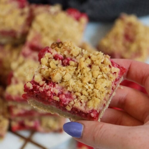 Fruity and delicious raspberry crumble bars with an oaty crumble base, raspberry filling, and even more delicious crumble on top! Say hello to some of the most delicious bits of heaven you will ever eat… these raspberry crumble bars. They are HEAVENLY and just so incredibly moreish and scrumptious. Traybakes So yeah, another traybake to…