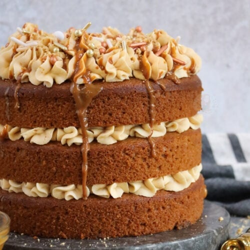 A deliciously cosy caramel ginger cake with easy ginger sponges, a ginger caramel frosting and more – heaven! This delicious cake is so cosy, so warming, and just absolute heaven in every bite. I honestly can’t keep up with how tasty this cake is?! I know I am supposed to big up my own recipes…