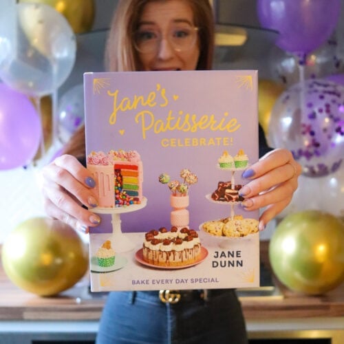 Introducing… MY SECOND BOOK! Here is my brand new book “Jane’s Patisserie: Celebrate” which is out August 4th, and available to pre-order NOW!!! This book has been SO exciting to work on… every recipe has a photo, it features SO many of your favourites including the Mini Egg NYC Cookies, Kinder Bueno Cheesecake, and 70…