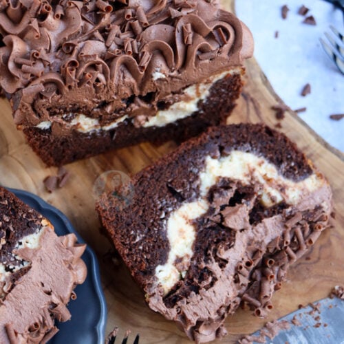 A delicious chocolate loaf cake, stuffed with a layer of baked vanilla cheesecake, topped with silky smooth frosting. We all know how much I adore cheesecake, how much I adore chocolate cake… even how much I love a loaf cake – so combining all of those beautiful and delicious things?! You have my idea of…