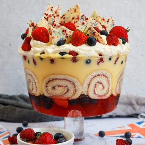 A delicious summery berry trifle perfect for the Platinum Jubilee with Swiss roll, jelly, custard, berries and more – my Jubilee Trifle! Platinum Jubilee! As it’s the Jubilee weekend next week, I thought I would post a mini series of Platinum Jubilee themed bakes for you all to enjoy over the Jubilee weekend! Whether it’s…